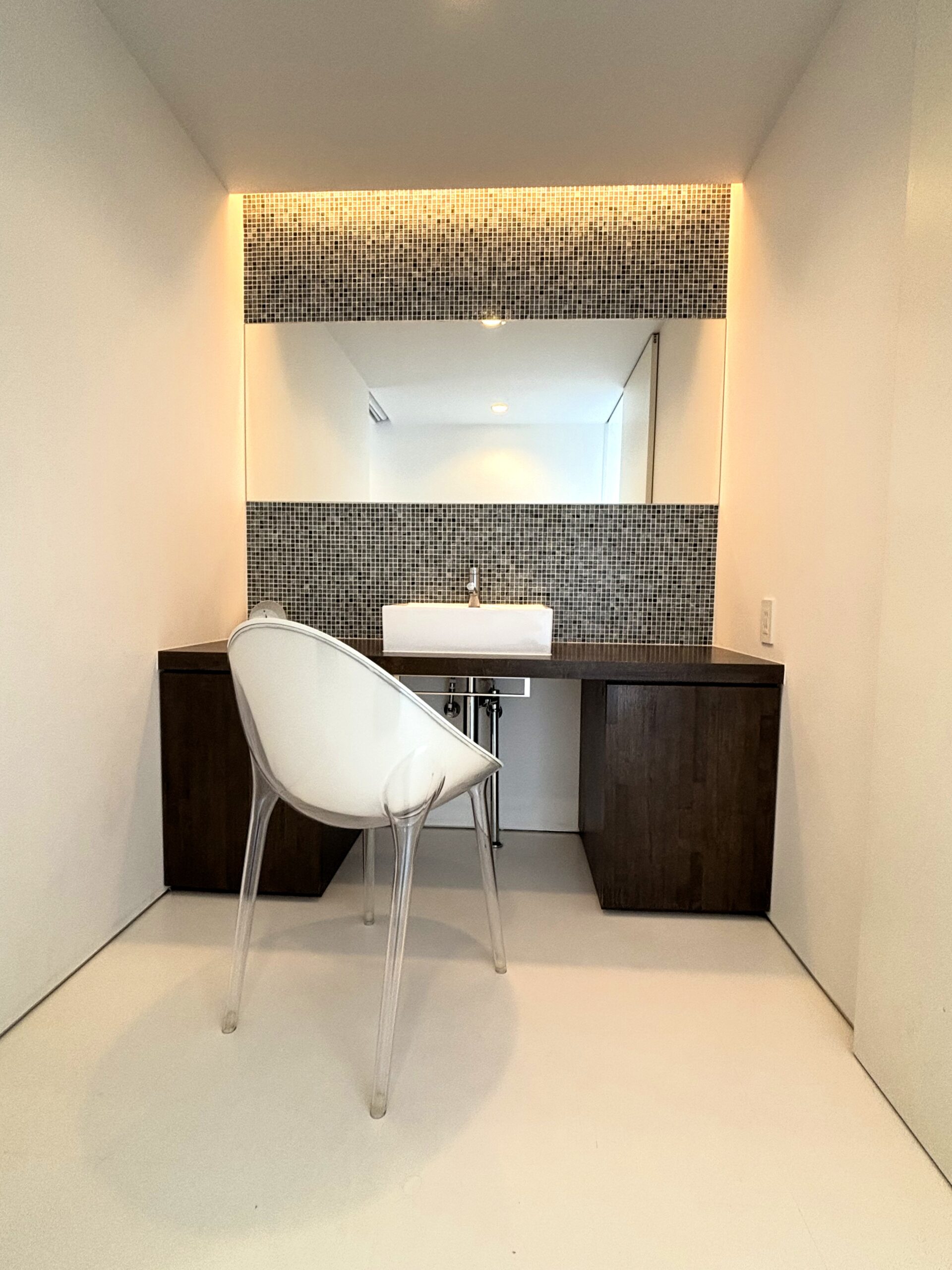 デザイン性の高い洗面台と照明が、毎日のルーティンにちょっとした心地よさを添えてくれます。