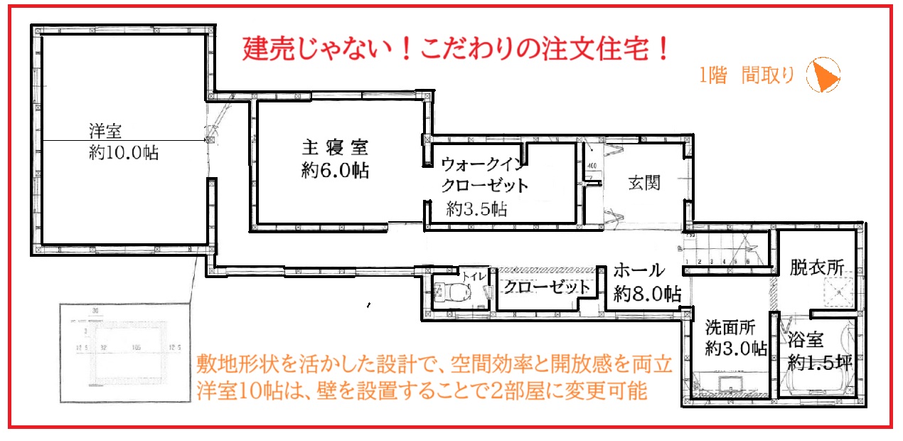 洋室約10.0帖は壁を設置して2部屋にすることも可能